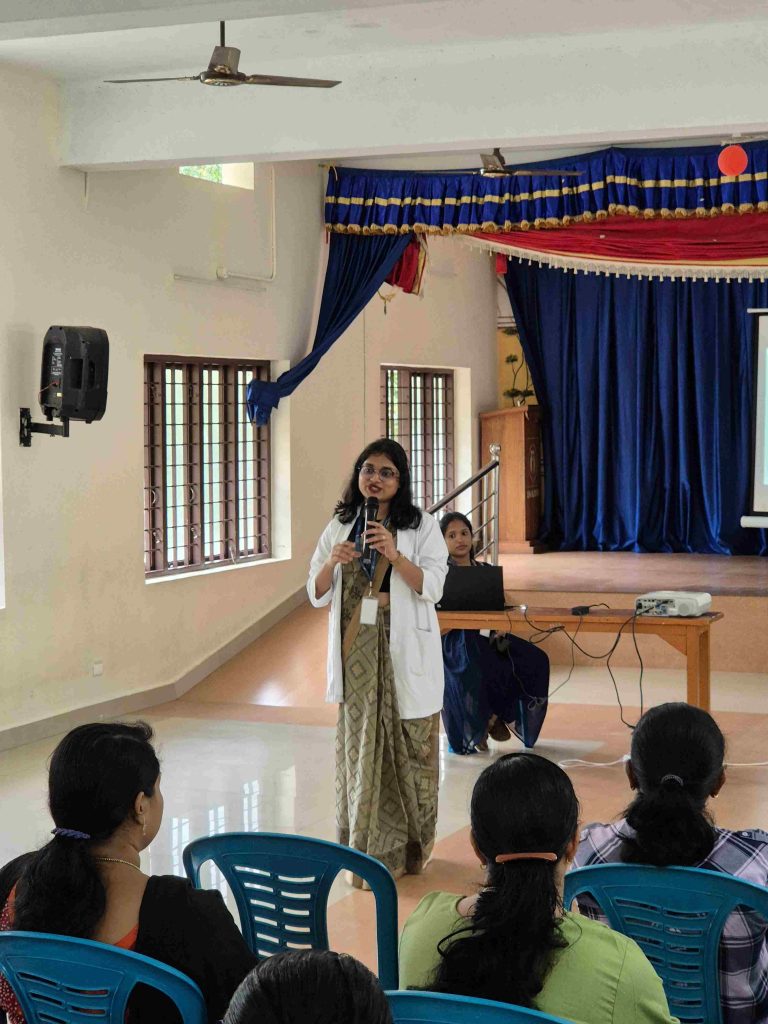 Further deepening the focus on paediatric care, Dr. Minnu elaborated on the role of Occupational Therapists in early intervention, play-based learning, and developmental milestone support. Following this, Dr. Gopika R delivered a practical session on Sensory Integration and Sensory Adaptations at Home, where she explained the eight sensory systems and simple, low-cost ways parents can create sensory-friendly environments within their homes.